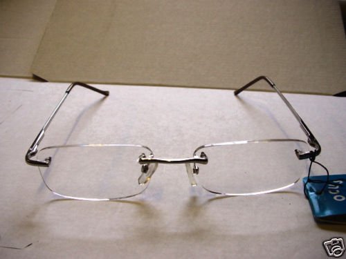 A PAIR OF NEW RIMLESS LENS READING GLASSES.